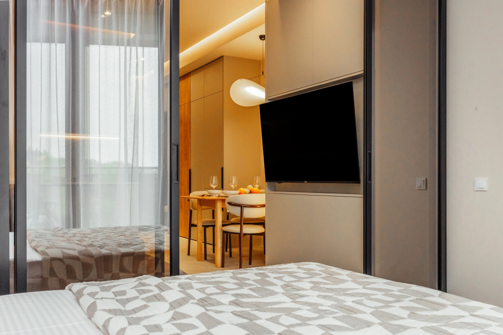 В номере гостей ждут телевизор и халат. Перечисленные услуги есть не во всех номерах.