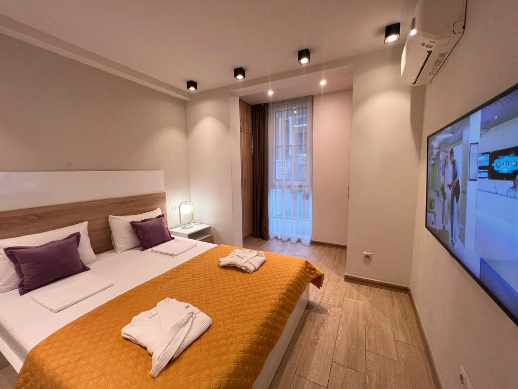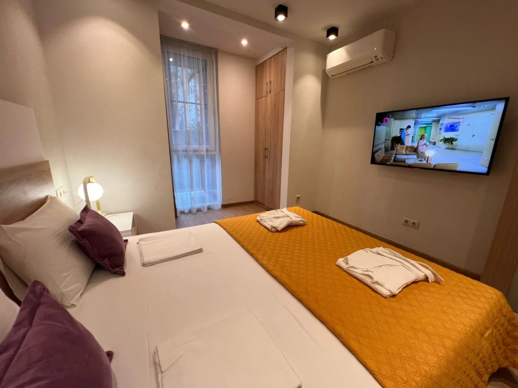 Гостиница Квартира Мадрид с террасой, адрес на карте Сочи, улица Ленина, д. 219А/2, с характеристиками номеров и доступностью онлайн бронирования на площадке ВашОтель.RU , цены проживания и удобства.