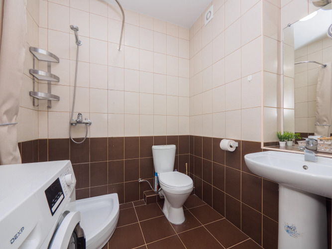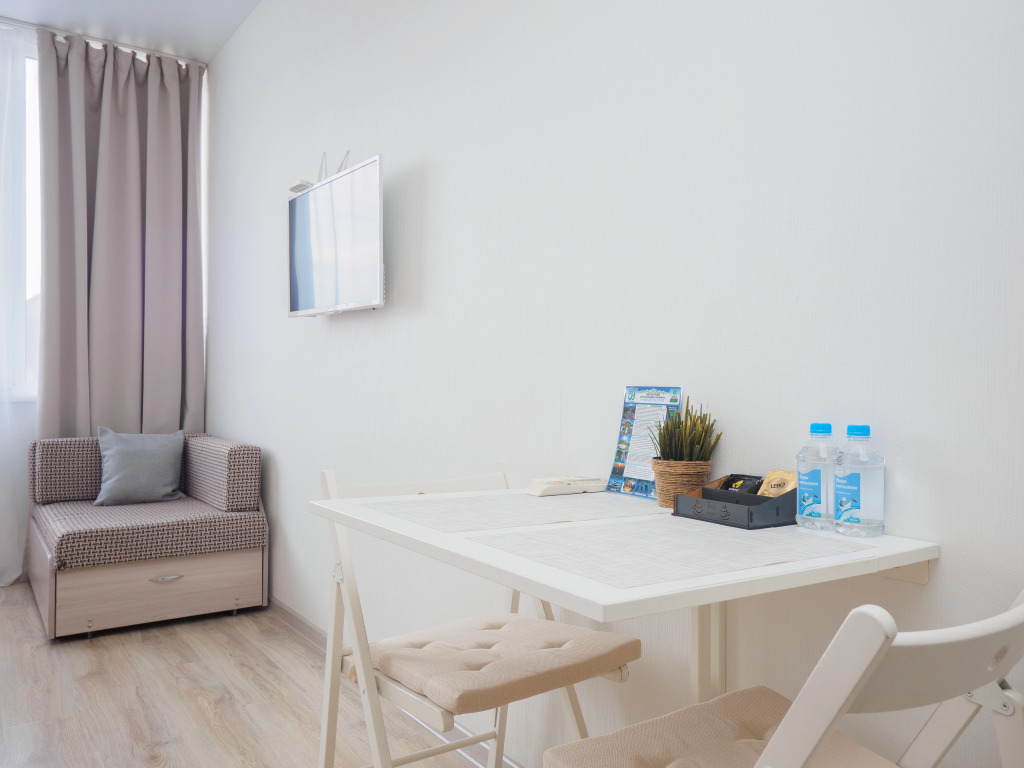 Оснащение: кондиционер, холодильник, плита, микроволновая печь, стиральная машина, водонагреватель, телевизор со Smart TV, фен, Wi-Fi, постельное белье, полотенца и средства гигиены.