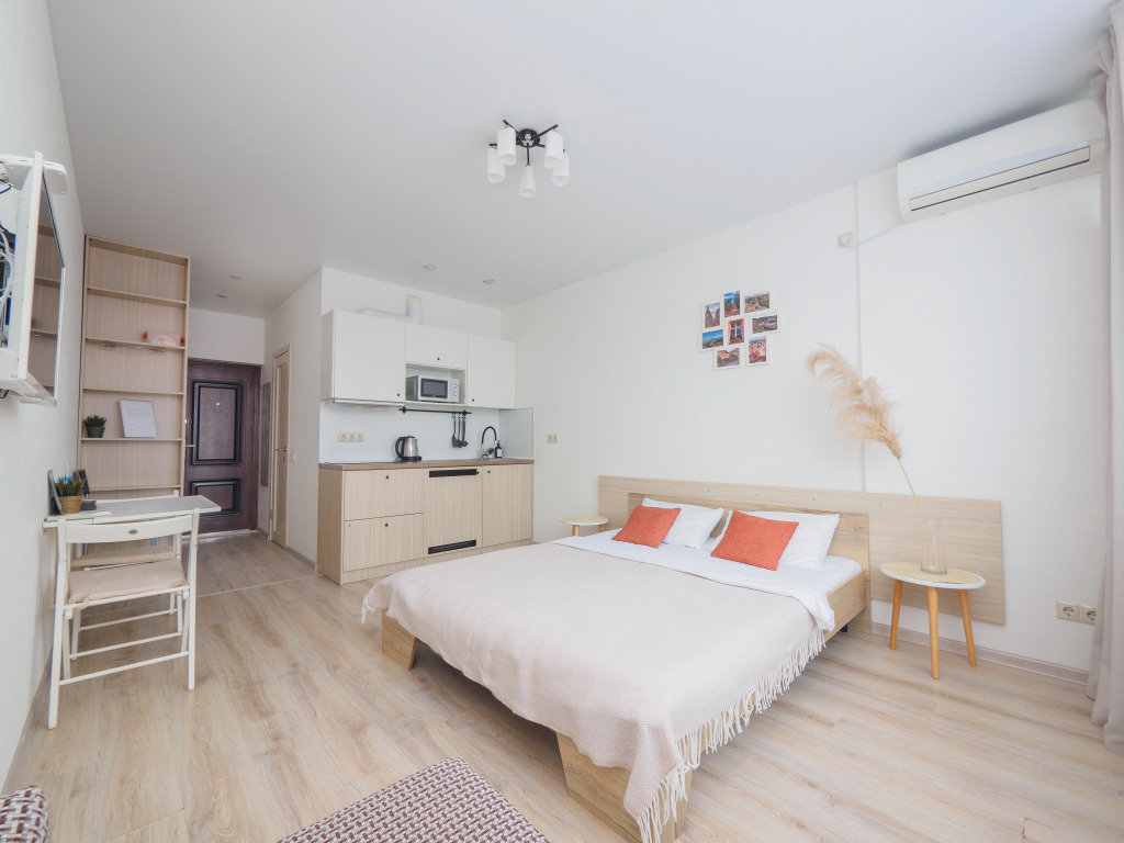 К услугам гостей апартаменты площадью 25 кв. м, расположенные на 4 этаже одиннадцатиэтажного здания. В распоряжении гостей 1 двуспальная кровать и 1 односпальная.