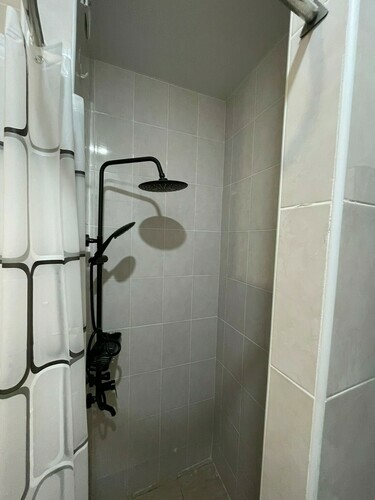 Индивидуальная ванная комната: душ, раковина, туалет.