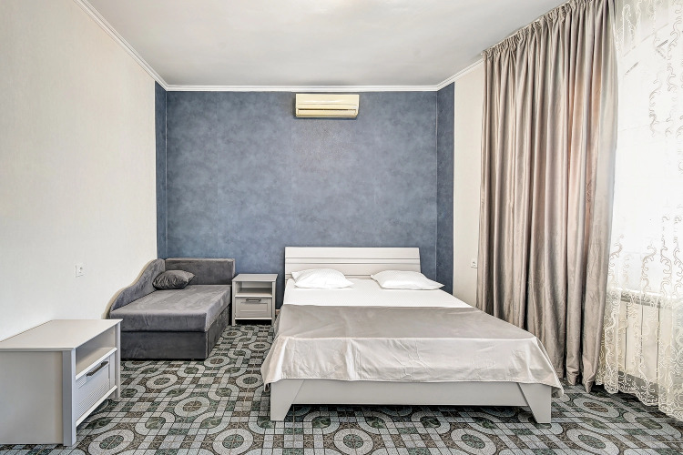 Номер уютно обставлен и оснащён необходимым, чтобы отдохнуть после долгого и насыщенного дня. Имеются телевизор. Оснащение зависит от выбранной категории номера.