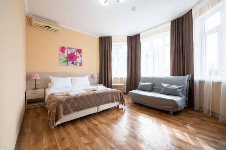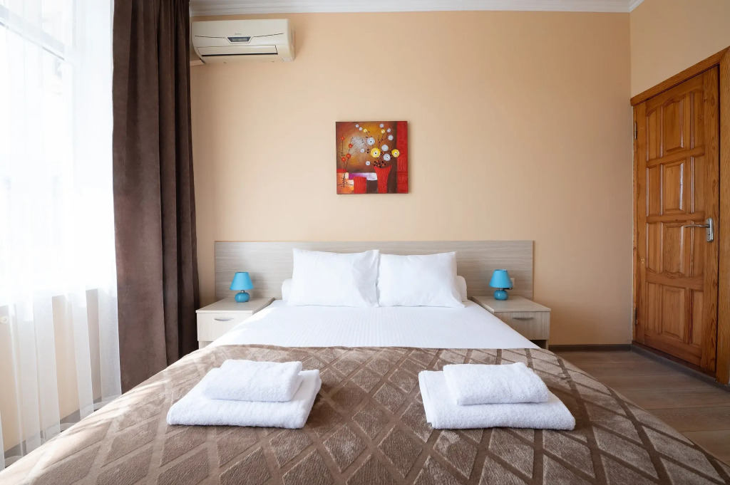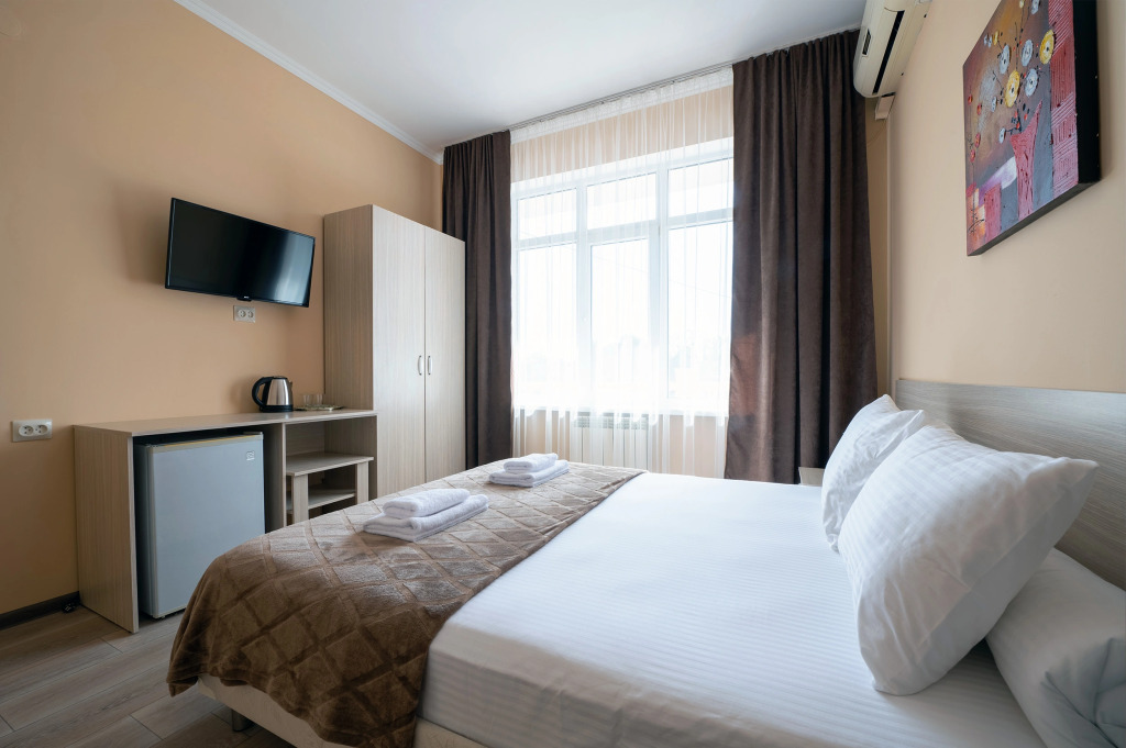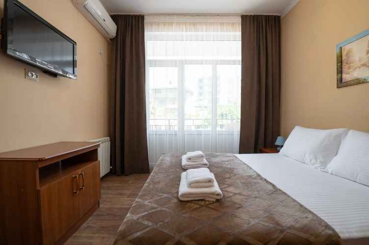 В номере вас будут ждать телевизор. Оснащение зависит от выбранной категории номера.