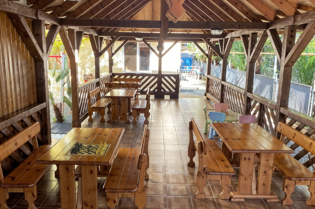 Мини-отель представляет собой пятиэтажное здание. Имеется детская площадка и летняя беседка. В отеле 35 номеров различных категорий, включая номера разной вместимости и апартаменты.