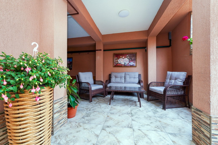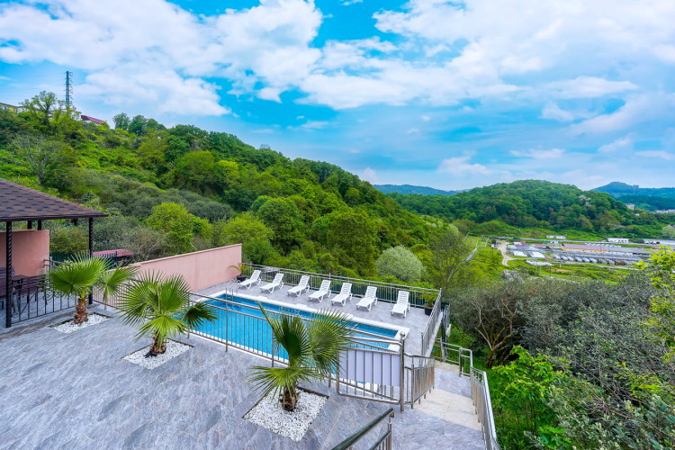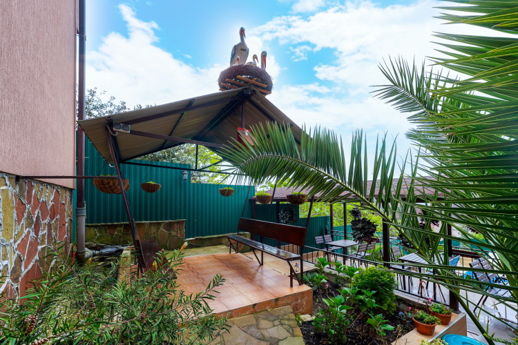 К услугам гостей два открытых бассейна с подогревом, детский бассейн, в которых можно купаться круглый год, есть шезлонги для принятия солнечных ванн. Для маленьких гостей предоставляется детская площадка с резиновым покрытием с качелями, батутом и горками. Есть зона барбекю, также беседка для отдыха. На всей территории отеля выполнено ландшафтное озеленение, декоративные фигурки птиц и животных. С террасы столовой открывается панорамный вид на море. Также в распоряжении гостей общий лаундж, экскурсионное бюро, прачечная. Собственный трансфер встретит гостей и доставит до гостевого дома.