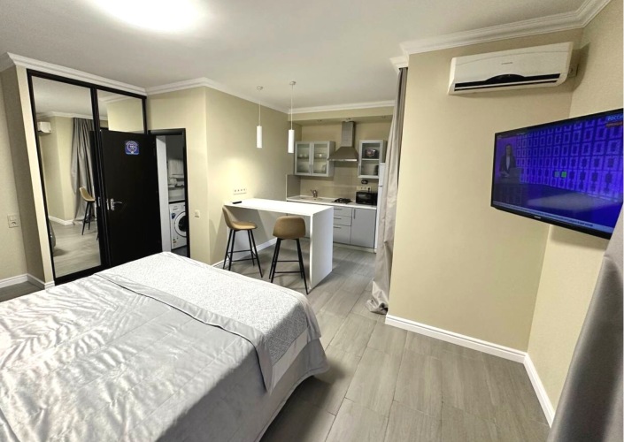 Все номера оборудованы как полноценные квартиры: есть кухня с газовой плитой, микроволновой печью, холодильником, комплектом посуды и необходимыми кухонными принадлежностями. В каждом номере отдельная ванная комната со стиральной машиной, бесплатными туалетными, банными принадлежностями и тапочками.