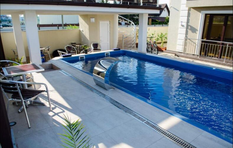 К услугам гостей апартаментов: открытый подогреваемый бассейн, закрытая территория с видеонаблюдением, зона для отдыха. Апарт-отель предлагает 26 номеров. Они расположены на трёх этажах и имеют различные площади от 28 до 42 кв. м. На мансардном этаже находятся пентхаусы с тремя и четырьмя спальнями, площадью свыше 130 кв. м для больших компаний. У апартаментов на первом этаже есть прилегающая терраса, оборудованная зоной отдыха.