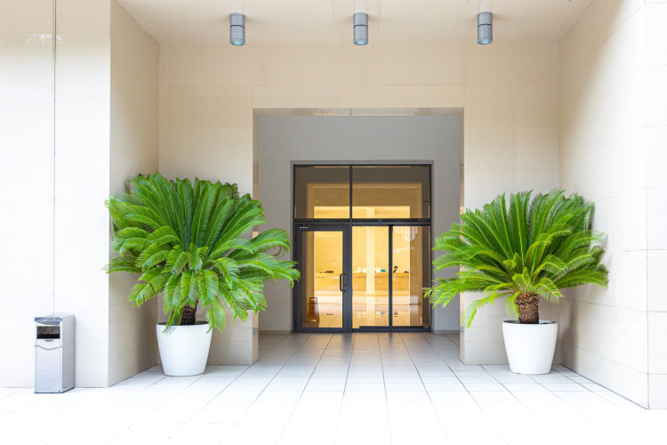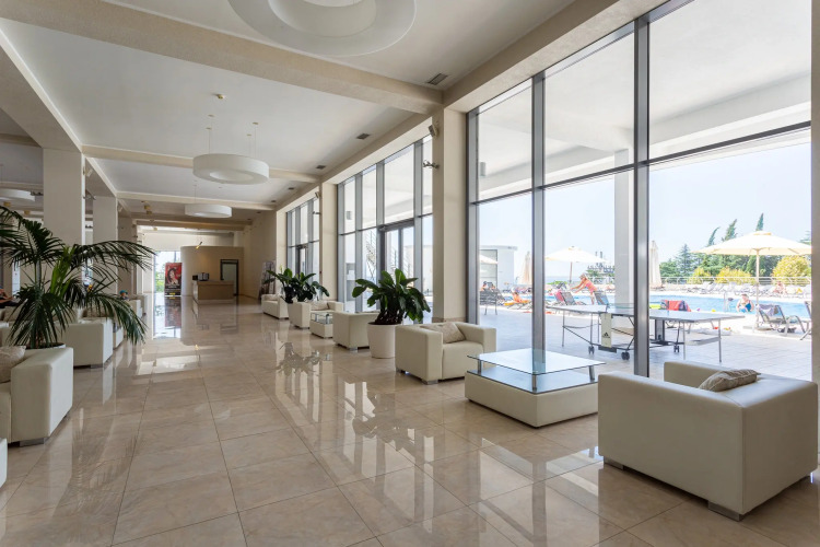 Также на территории комплекса к услугам гостей: закрытая охраняемая территория, видеонаблюдение, современный тренажёрный зал, детский клуб, детская площадка, СПА зона, ресторан на первом этаже, кофейня, магазин, аптека.