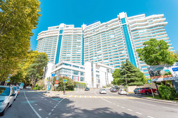 Апартаменты с террасой и панорамным видом на море в жилом комплексе бизнес класса «Идеал Хаус». На территории комплекса гостей ждет бассейн с отдельной детской зоной для купания, оборудованный шезлонгами, душевыми и раздевалками, камерами хранения, а также баром с напитками.