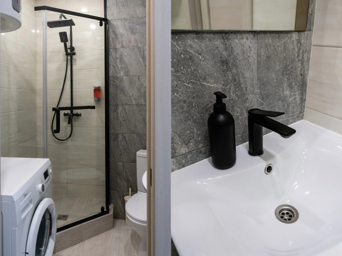 В апартаментах в распоряжении гостей есть кухня с плитой, холодильником, микроволновой печью, чайником и посудой. Есть кондиционер, Smart TV, Wi-Fi, оборудован тёплый пол. Для удобства гостей в апартаментах присутствуют стиральная машина, фен, утюг, сушилка для белья. Предоставляются постельное бельё и полотенца, а также шампунь, гель для душа, средство для мытья посуды.