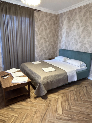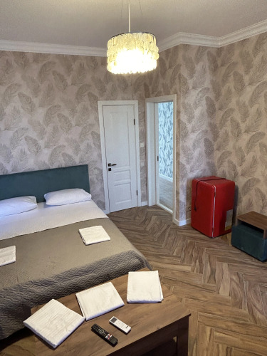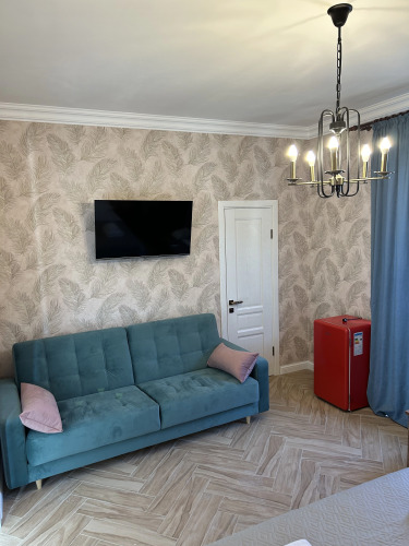 На первом этаже гостевого дома расположено кафе. На территории работает бесплатный Wi-Fi. Для путешественников на машине организована платная парковка. Все номера предоставляются в полной комплектации: душ, санузел, фен, кондиционер, холодильник, телевизор.