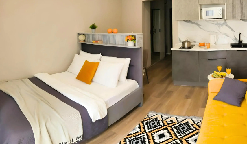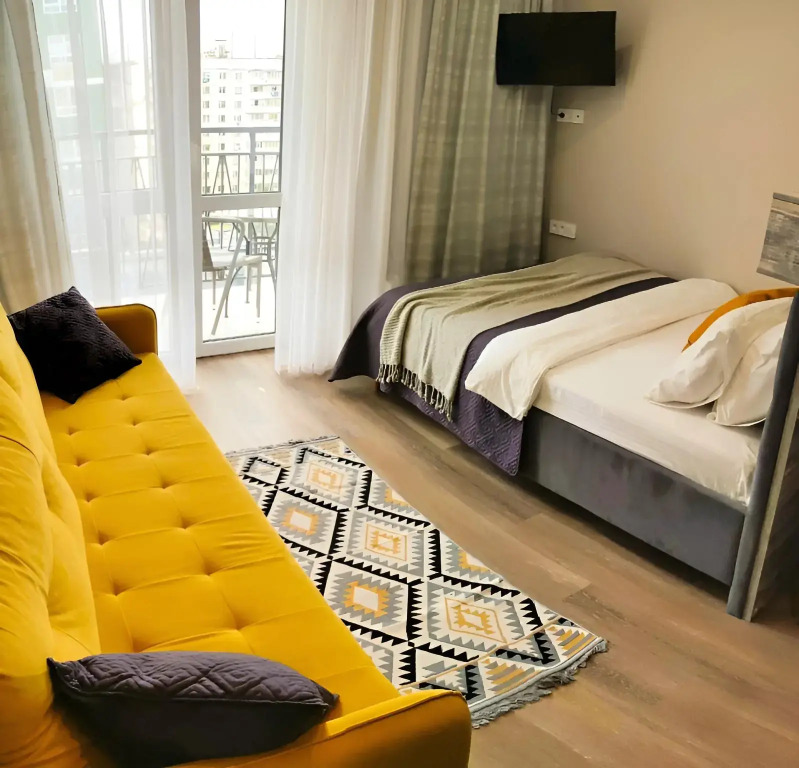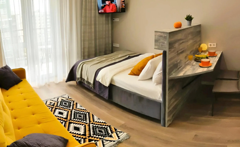 Номер уютно обставлен и оснащён необходимым, чтобы отдохнуть после долгого и насыщенного дня. Имеются телевизор. Оснащение зависит от выбранной категории номера.
