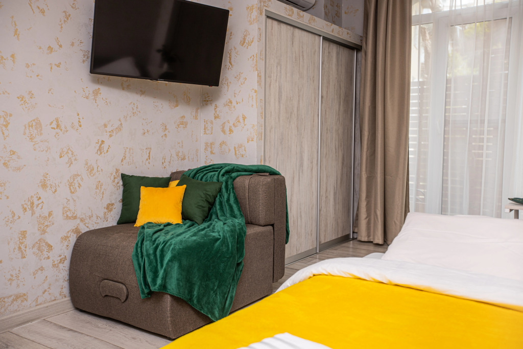 Чтобы вы могли отдохнуть после долгого дня, в номере есть телевизор. Оснащение зависит от выбранной категории номера.