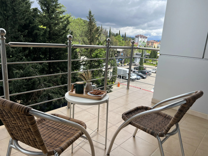 В апартаментах есть кухня с посудой, постельное бельё и полотенца, ванная комната с гелем для душа, шампунем и лосьоном для тела. Открытый балкон с видом на горы подходит для отдыха и работы.