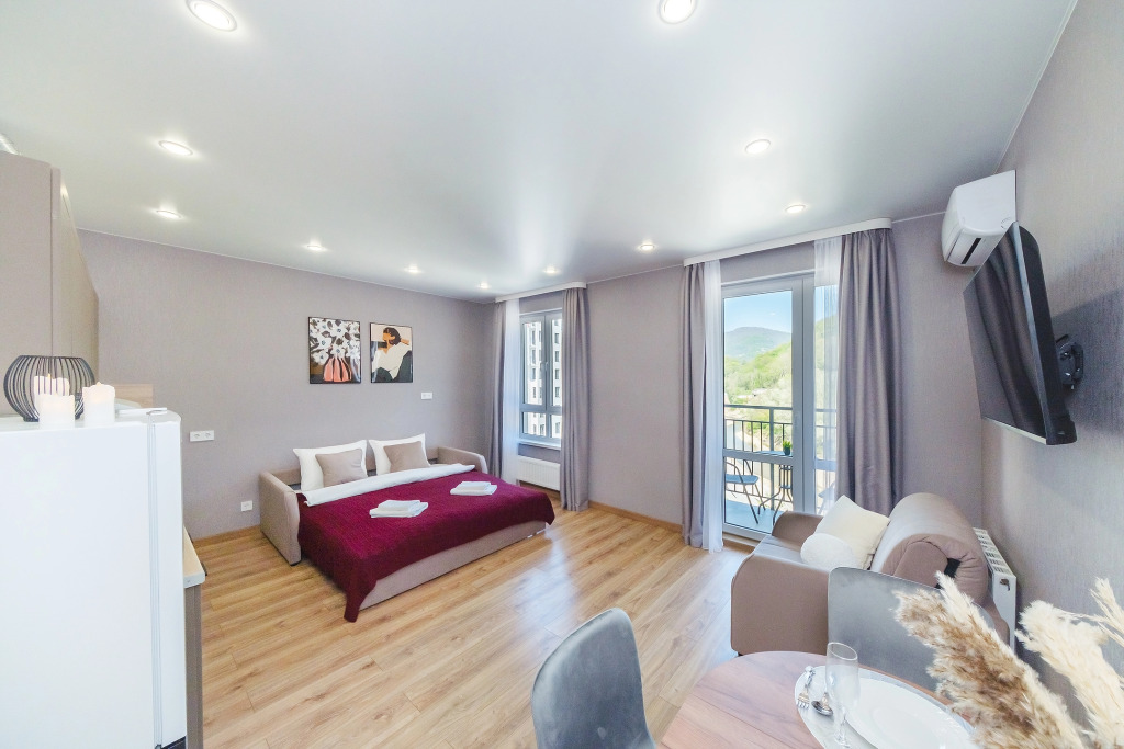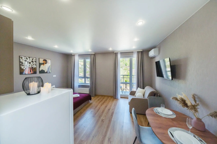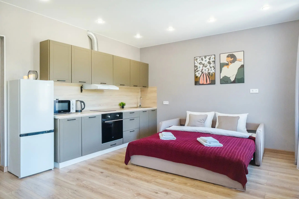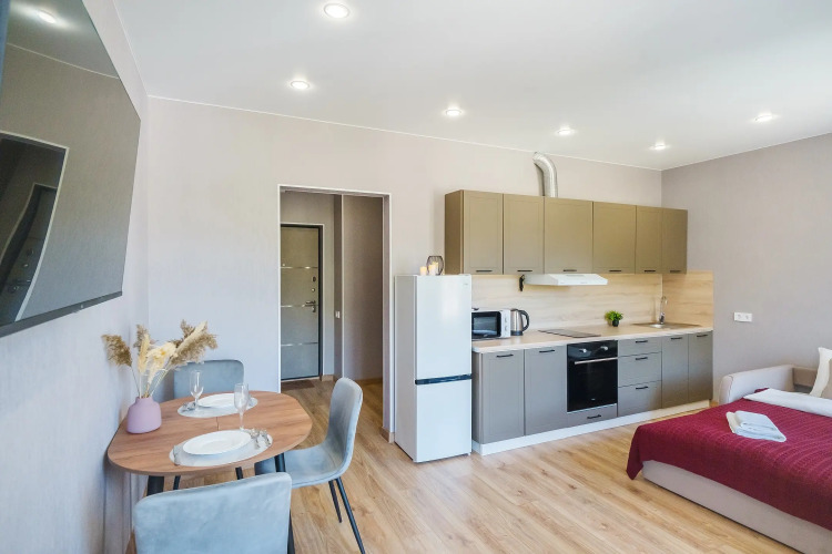 В путешествие можно взять питомца. В апартаментах возможно размещение с домашним любимцем. Сотрудники апартаментов поддержат беседу на русском.