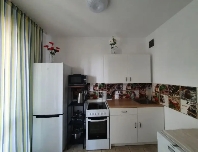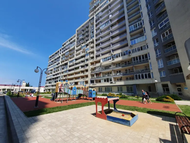 В квартире есть необходимое для проживания: 2 дивана-кровати, детская кроватка, Wi-Fi, кондиционер, микроволновая печь, электрочайник, электроплита. А также лоджия с видом на море.
