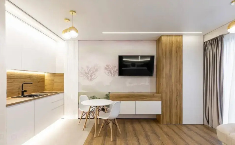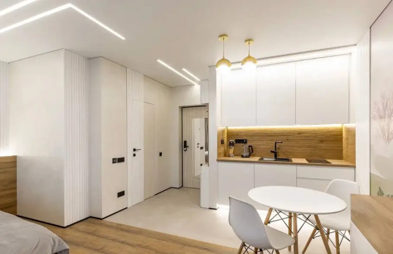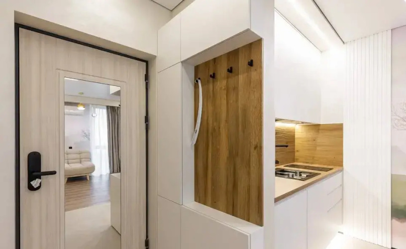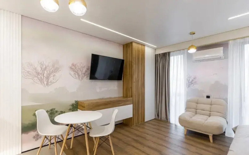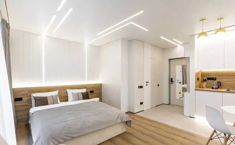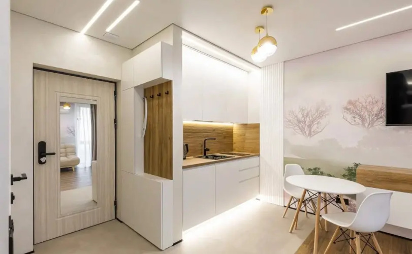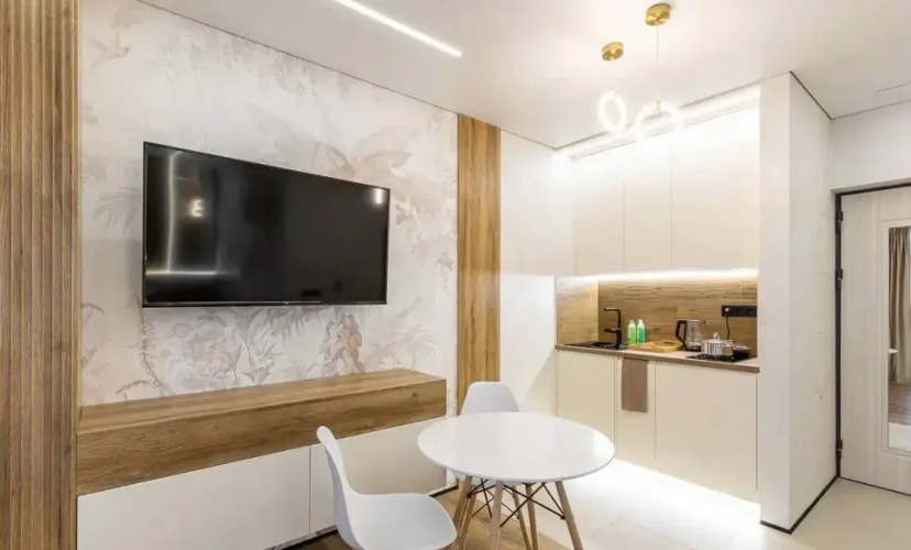 B апартаментах имеется индукционная плита, холодильник, необходимая посуда, освещение с различными сценариями. Также в распоряжении гостей двуспальная кровать с белым постельным бельём и раскладушка, Wi-Fi, телевизор смарт-ТВ, в ванной комнате имеется душевая кабина, полотенца, гигиенические средства, фен, стиральная машина, гладильная доска, утюг, сушилка.