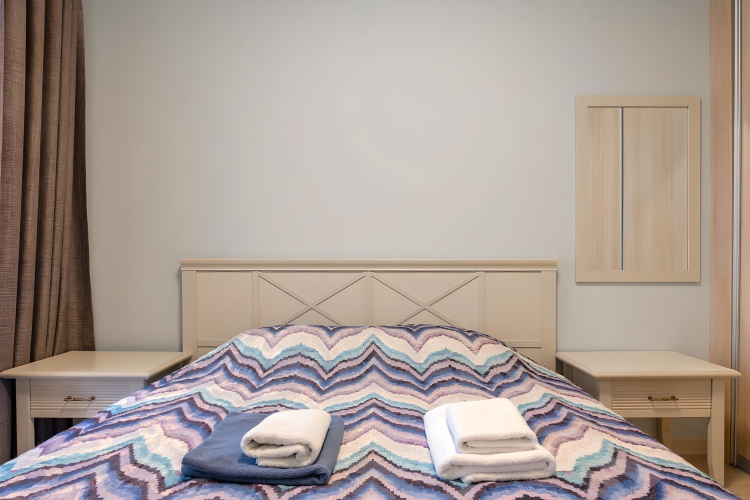 Номер уютно обставлен и оснащён необходимым, чтобы отдохнуть после долгого и насыщенного дня. Имеются телевизор. Оснащение зависит от выбранной категории номера.