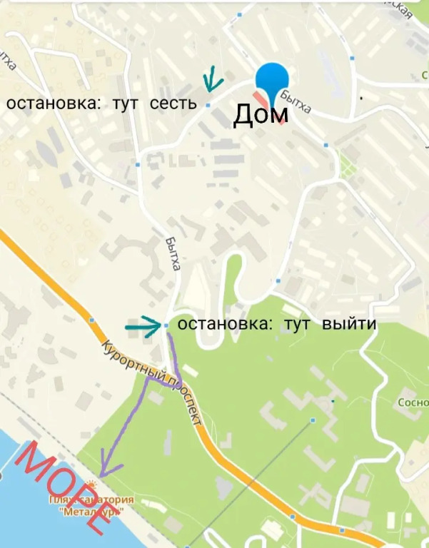 адрес на карте Сочи, улица Бытха, д.36, с описанием