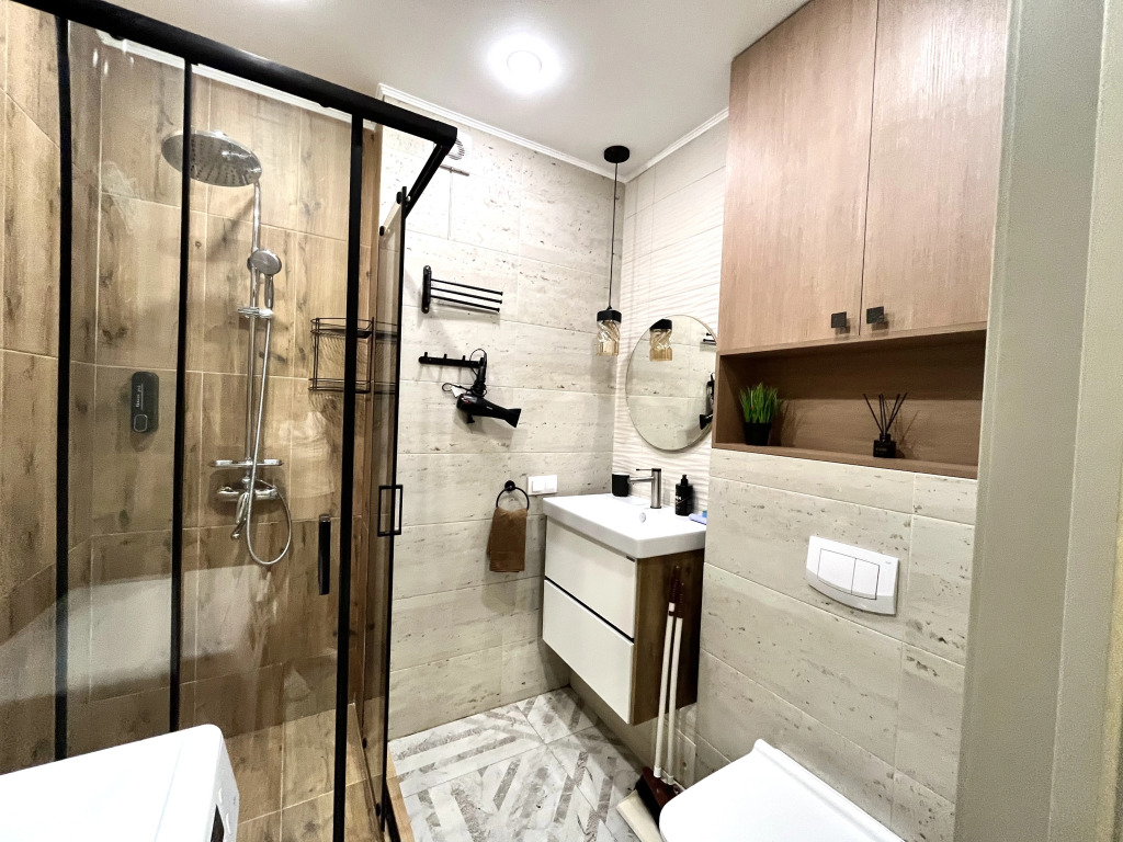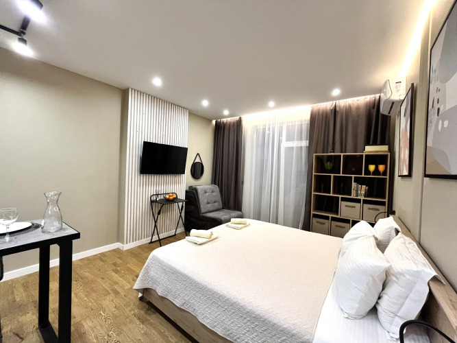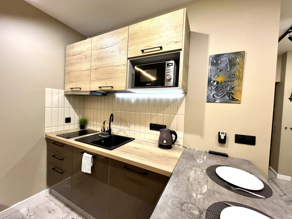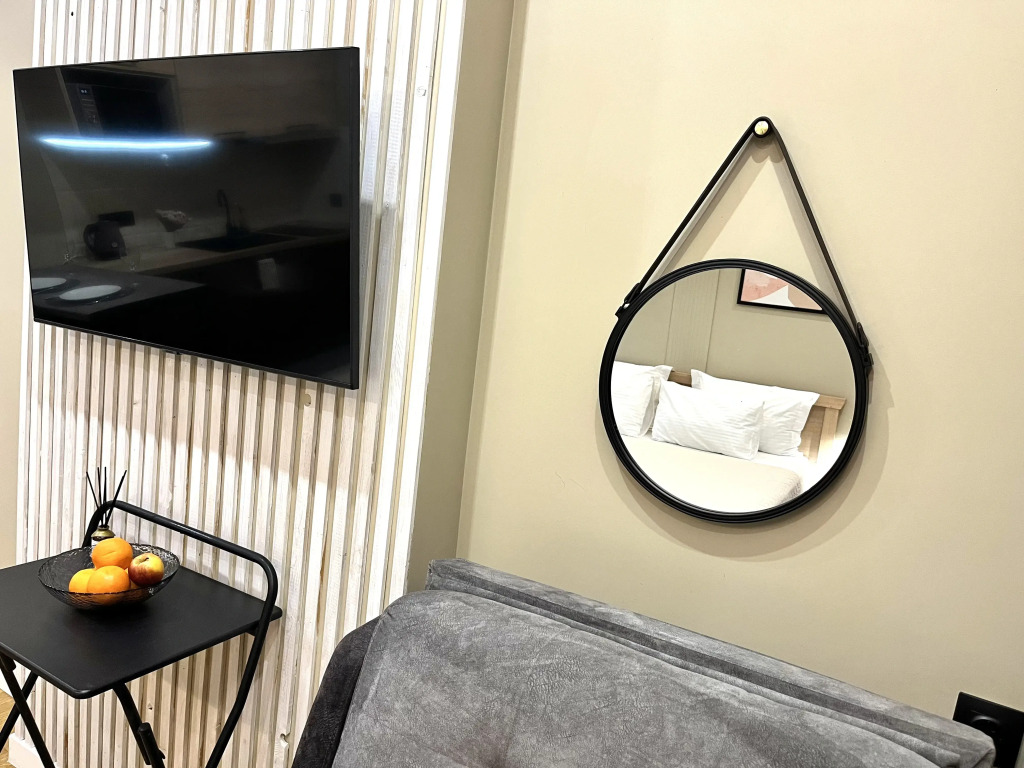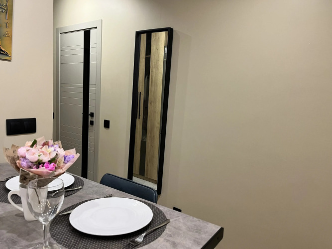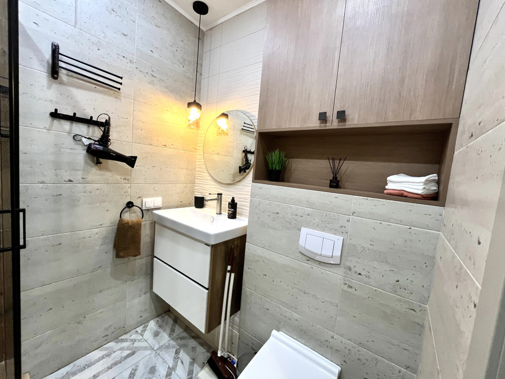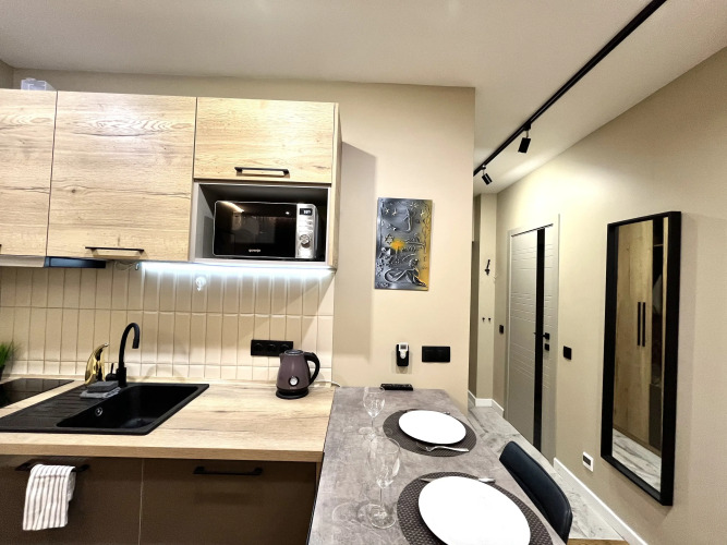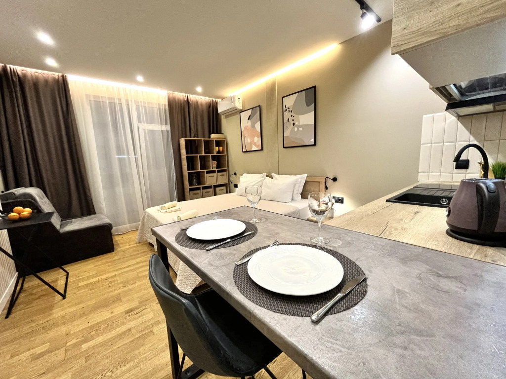 В апартаментах есть балкон, откуда открывается вид на море и горы. В распоряжении гостей: фен, гладильная доска, утюг, стиральная машина, микроволновая печь, плита, посуда, сплит-система и сушилка. Гостям предоставляются постельное бельё, полотенца, средства гигиены, бесплатный доступ к сети Wi-Fi. Обеспечен круглосуточный доступ к горячей воде. Автомобиль можно припарковать на общественной парковке вдоль дороги.