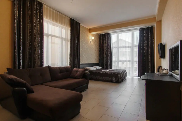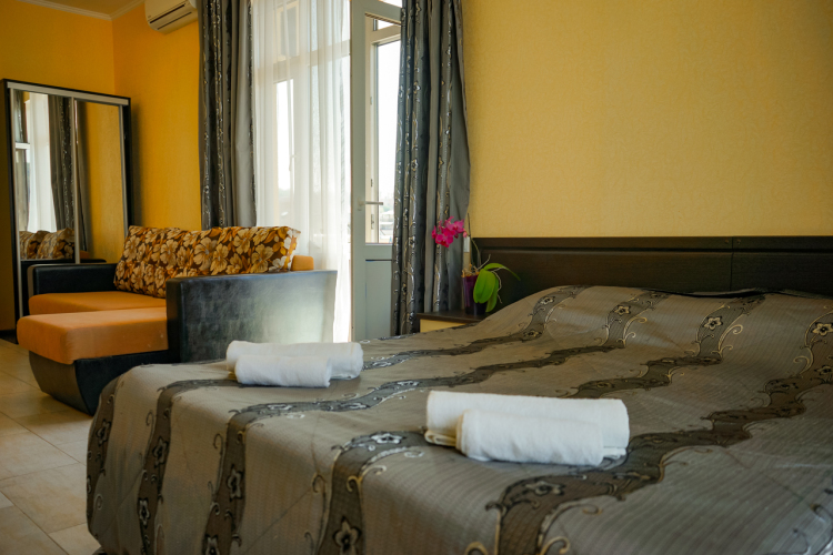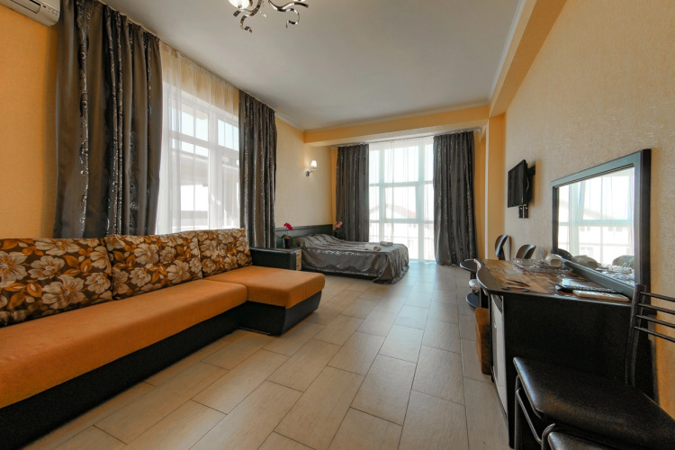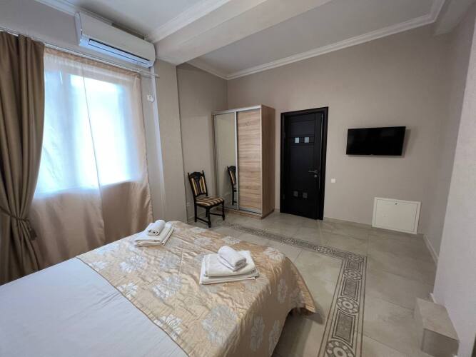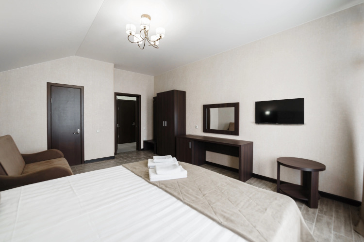 В номере вы найдёте телевизор. Оснащение зависит от выбранной категории номера.