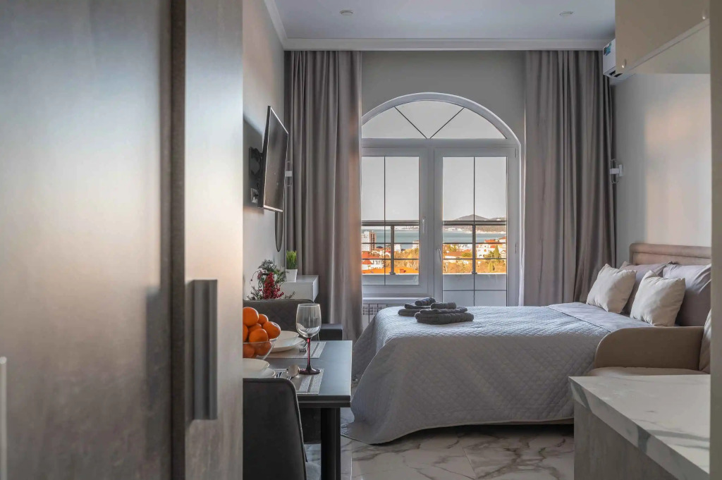 Апартаменты Орхидея УК Атмосфера с Видом на Море, адрес на карте Сочи, улица Ленина, д. 290/7, корп. 2, с характеристиками номеров и возможностью онлайн бронирования на ресурсе vashotel.ru , стоимость проживания и удобства.