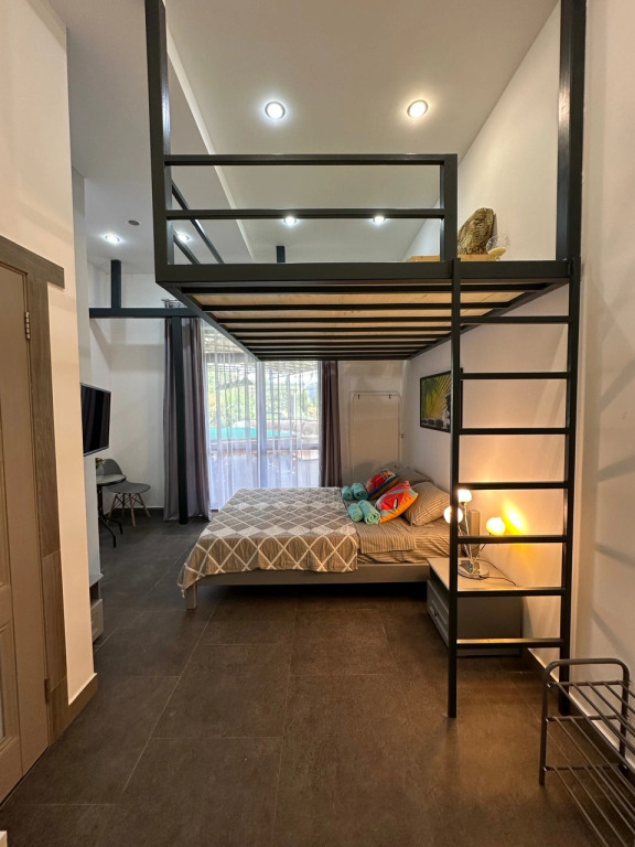Из панорамных окон и с видовой террасы открывается вид на горы и огни аэропорта. Гостевой дом расположен на закрытой территории с парковкой, мангалом и барбекю. Также гости могут отдохнуть на шезлонге у крытого бассейна.