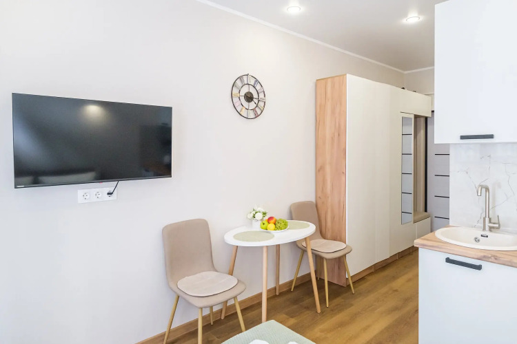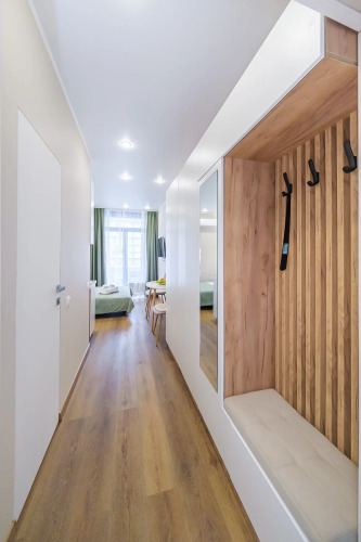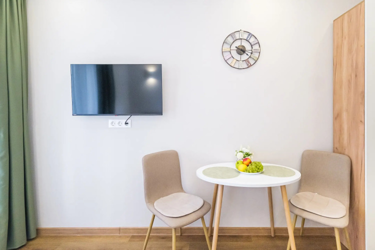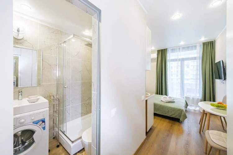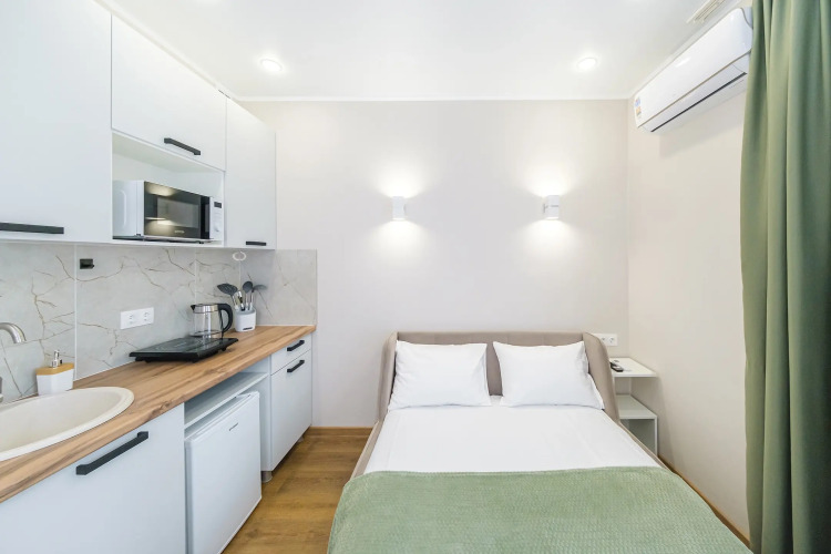 Кафе апартаментов — удобное место для перекуса. А ещё в распоряжении гостей гладильные услуги. Сотрудники апартаментов поддержат беседу на русском.