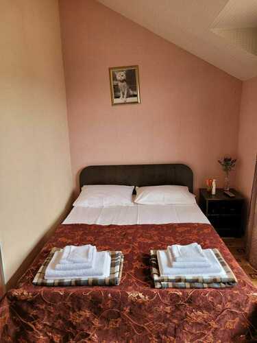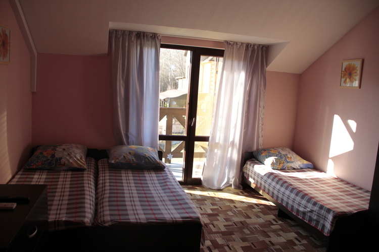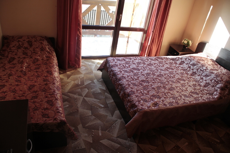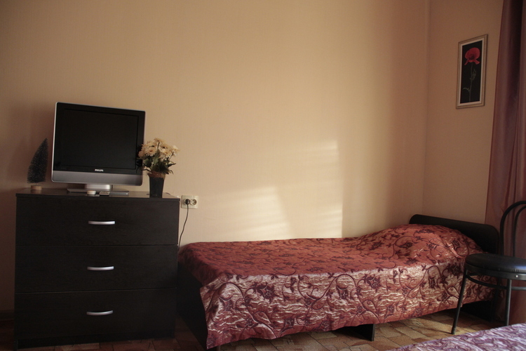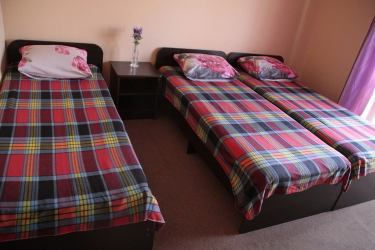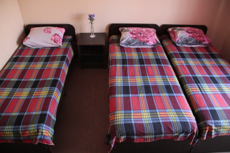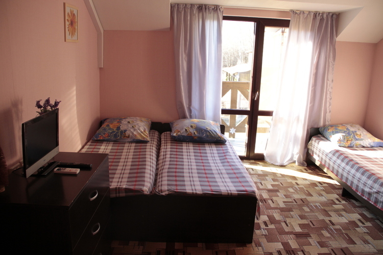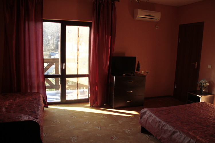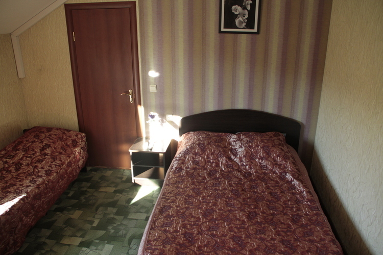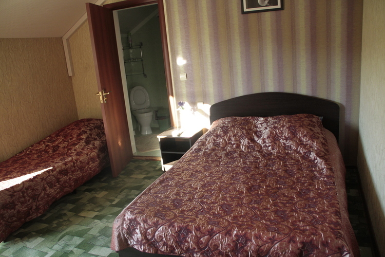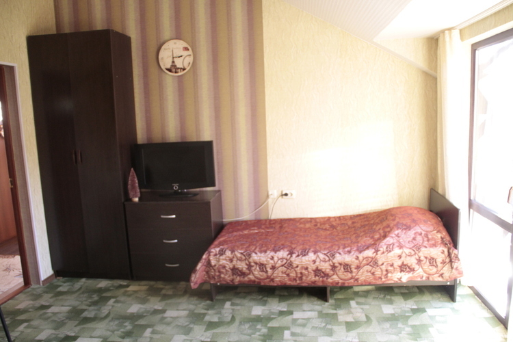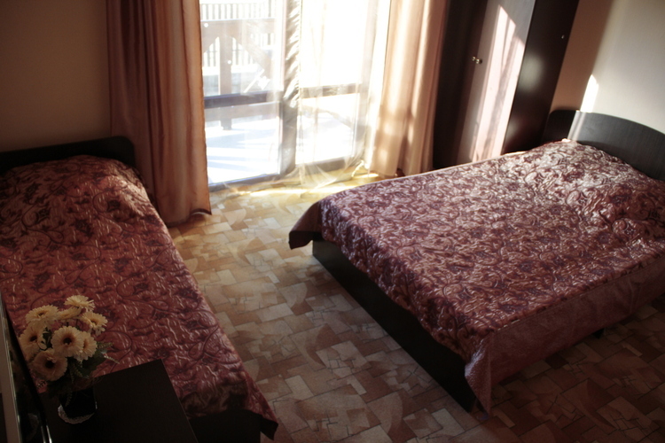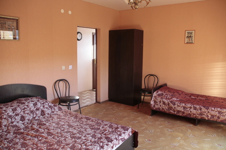 Комфортный семейный номер с большой двуспальной кроватью или двумя раздельными, с дополнительной кроватью. Каждый номер оборудован кондиционером, телевизором, необходимой для отдыха мебелью- прикроватными тумбами, шкафом для одежды. Каждый номер с балконом. Собственная ванная комната с душевой кабиной и туалетом.