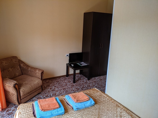 Номер с большой двуспальной или двумя раздельными кроватями. Каждый номер оборудован кондиционером, телевизором, необходимой для отдыха мебелью- прикроватными тумбами, шкафом для одежды. Каждый номер с балконом. Собственная ванная комната с душевой кабиной и туалетом.