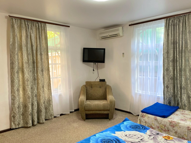Номер уютно обставлен и оснащён необходимым, чтобы отдохнуть после долгого и насыщенного дня. Имеются телевизор. Перечисленные услуги есть не во всех номерах.