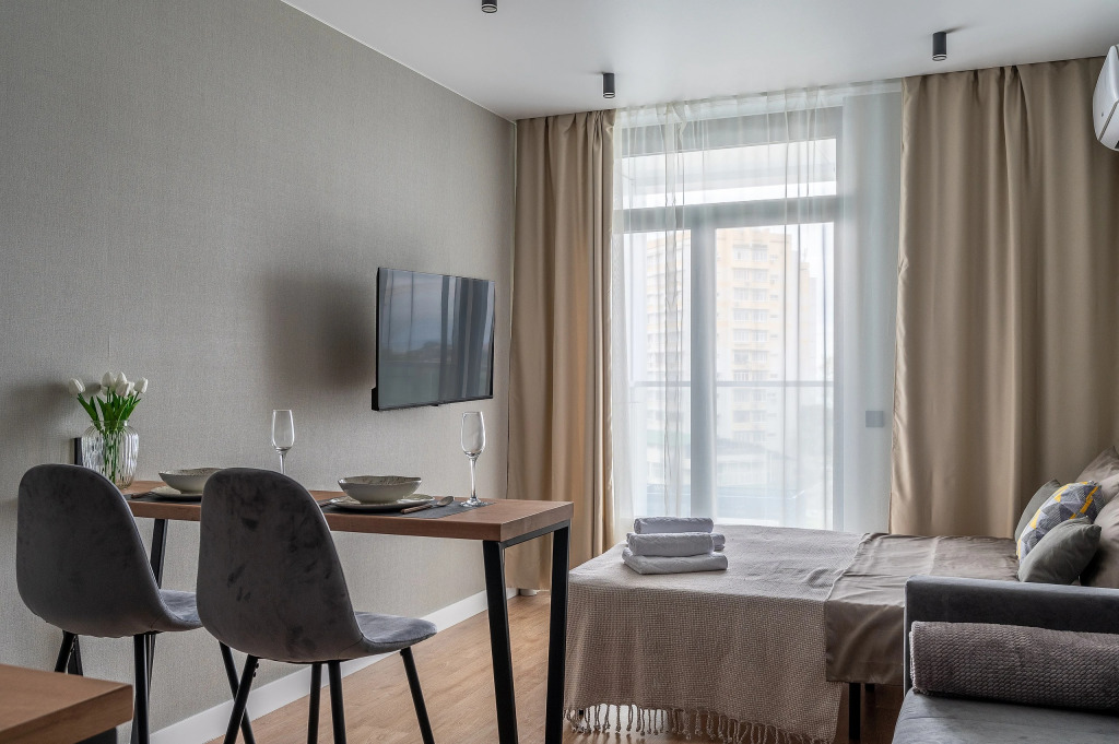 Апартаменты Попкорн УК Атмосфера с видом на горы, адрес на карте Сочи, улица Ясногорская, д.16/2, с характеристиками номеров и возможностью онлайн бронирования на площадке vashotel.ru , стоимость проживания и удобства.