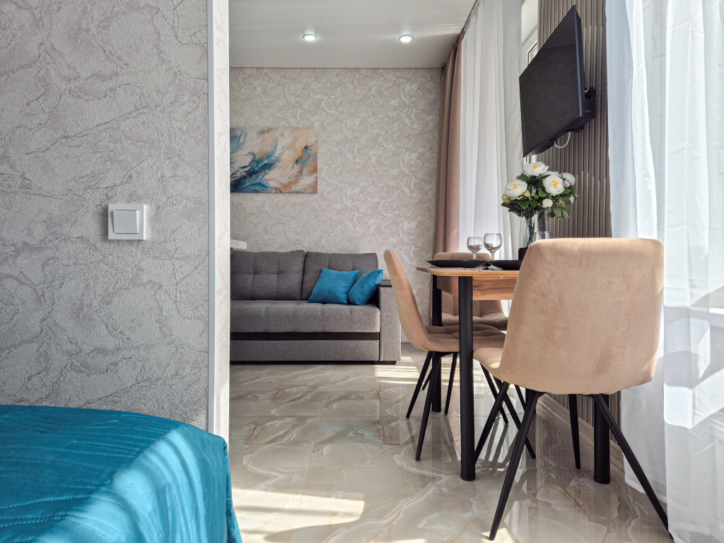 В поисках домашнего уюта: апартаменты «Квартира Просторная студия с балконом» находятся в Сочи. Эти апартаменты располагаются в 18 км от центра города. Рядом с апартаментами — Смотровая башня горы Ахун, Олимпийский парк и Сочинский дендрарий.
