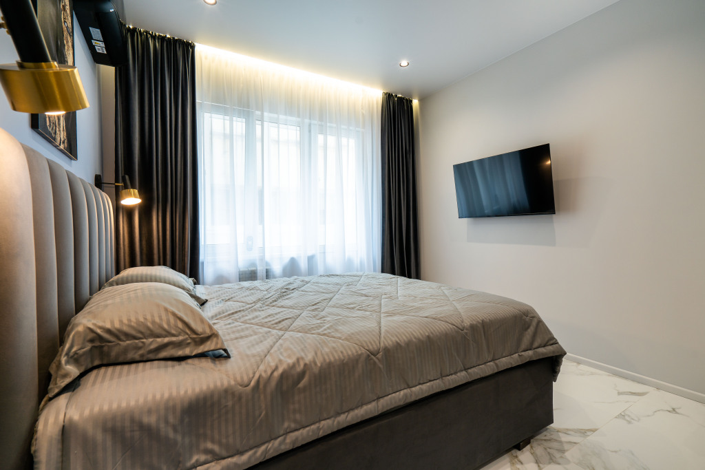В номере есть телевизор. Оснащение зависит от выбранной категории номера.