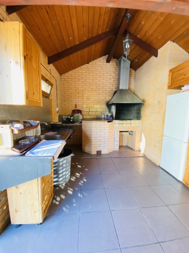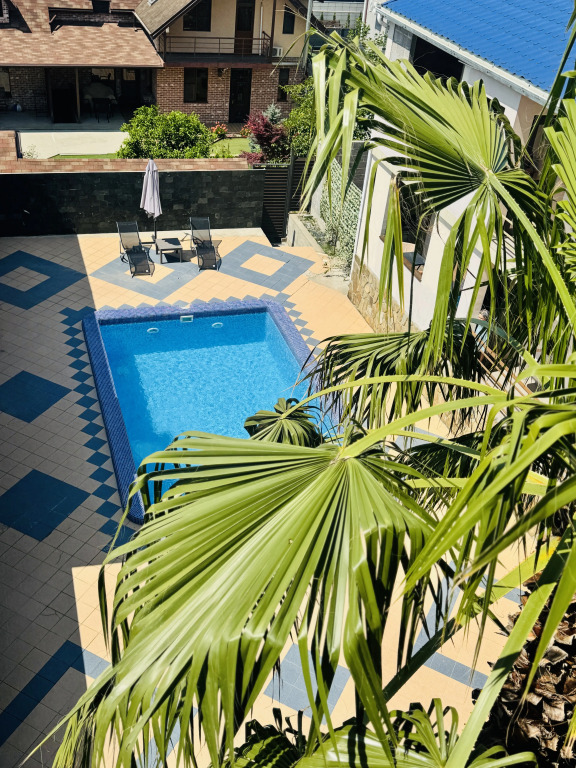На территории частного дома обустроены собственный подогреваемый бассейн, зона отдыха и кухня для самостоятельного приготовления пищи.