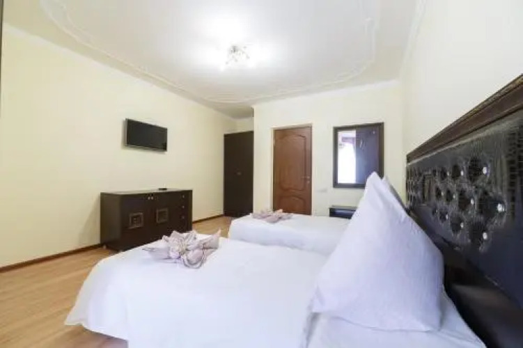 Номер уютно обставлен и оснащён необходимым, чтобы отдохнуть после долгого и насыщенного дня. Имеются душ, телевизор и тапочки. Перечисленные услуги есть не во всех номерах.