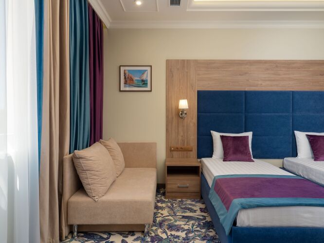 Чтобы вы могли отдохнуть после долгого дня, в номере есть телевизор. Оснащение зависит от выбранной категории номера.