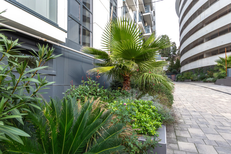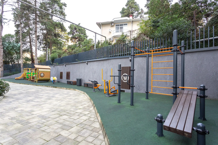 Апартаменты располагаются в в жилом комплексе «Фестивальный». На его территории есть консьерж, видеонаблюдение, огороженная территория с озеленением, детской площадкой и спортивной зоной. Напротив дома расположен паркинг.