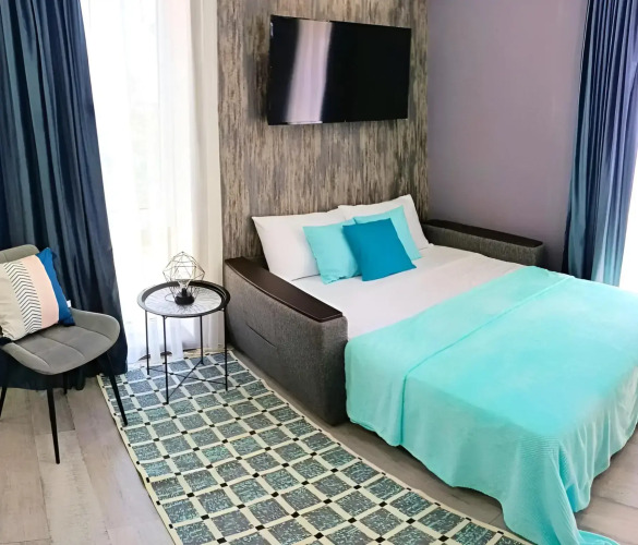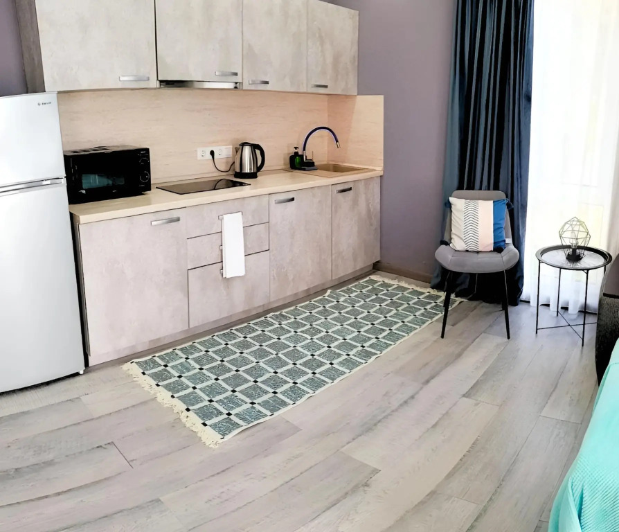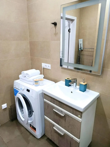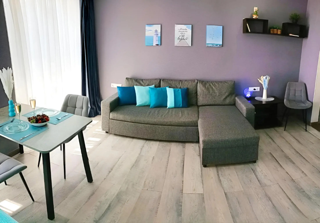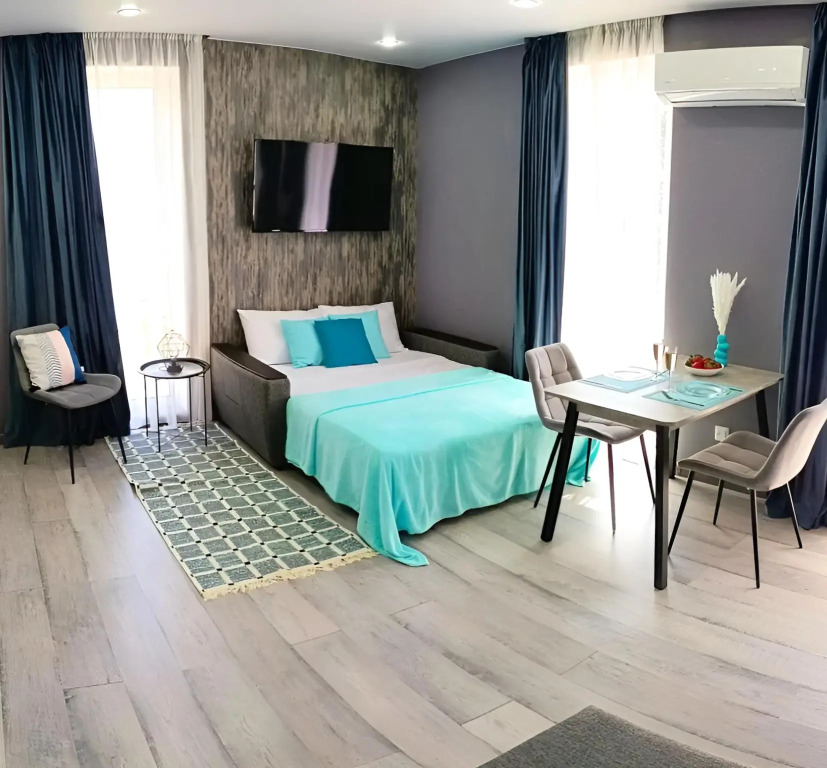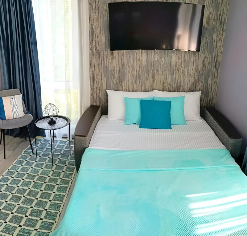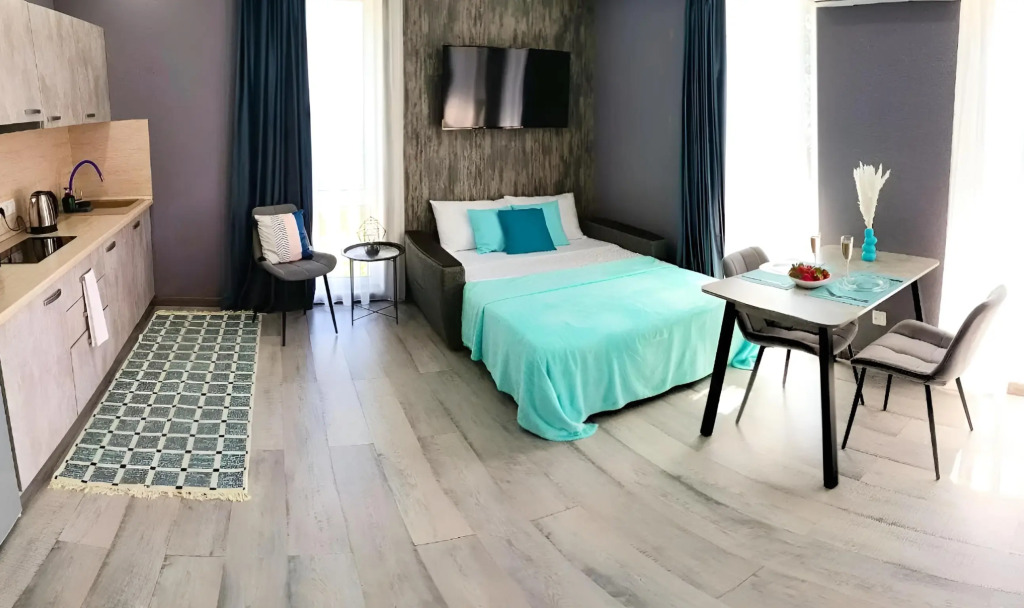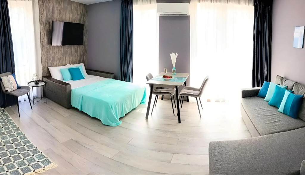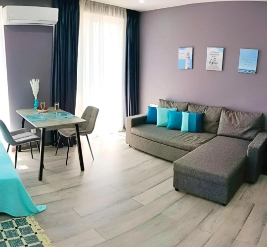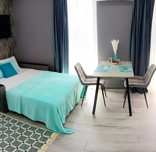 Квартира с Балконом на 4 гостей находится в Сочи, на территории жилого комплекса «Касабланка». На территории комплекса для гостей есть бесплатный сезонный бассейн, зона барбекю, детская и спортивная площадки, уличная парковка. Море поблизости. На транспорте можно добраться до центра Сочи, вокзала Адлер, аэропорта и Олимпийского парка. Рядом есть магазины продуктов, кофейня, пиццерия, пункты выдачи заказов, супермаркет.