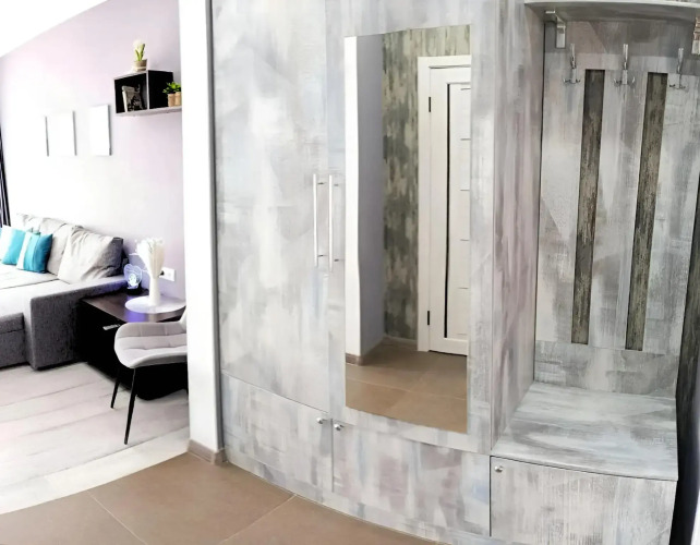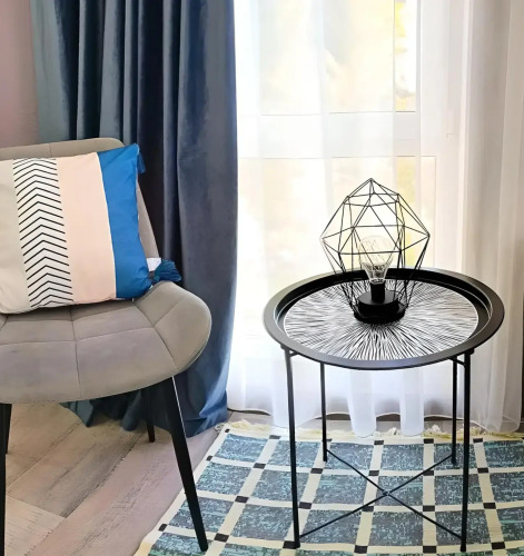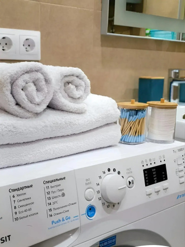 В квартире в распоряжении гостей есть два двуспальных дивана с постельным бельём, комплект полотенец для каждого гостя, кухонный гарнитур, варочная панель, холодильник, чайник, посуда, обеденная зона со столом и 4 стульями, сушилка для белья, гладильная доска, утюг, фен, жидкое мыло, шампунь, гель для душа. На балконе есть стол и стулья.