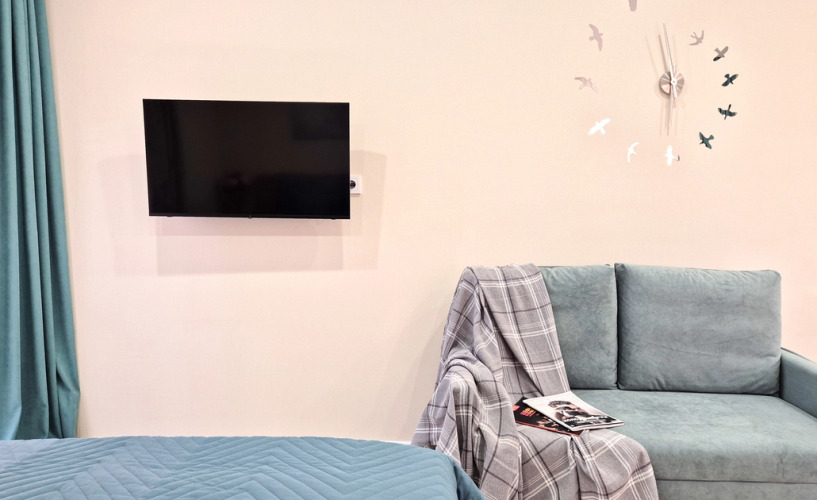 В номере вы найдёте телевизор. Оснащение зависит от выбранной категории номера.