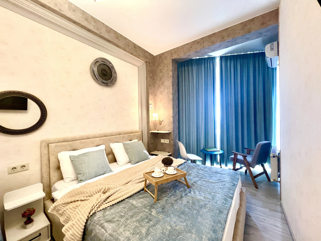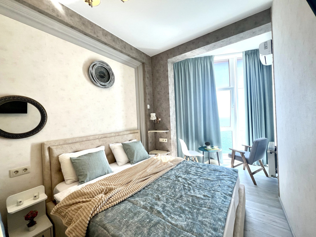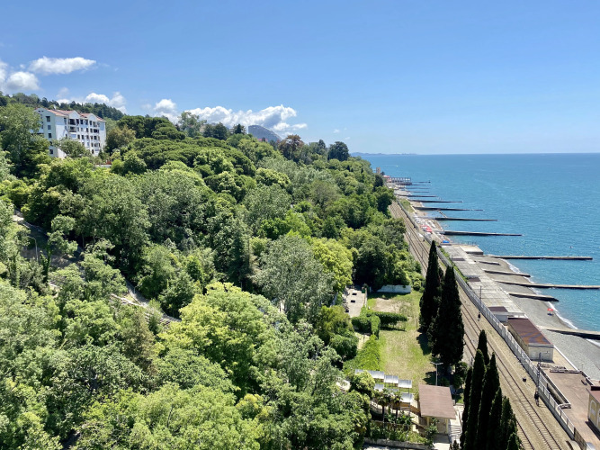 Апартаменты с прекрасным панорамным видом на море располагаются в центральном районе Сочи. Поблизости расположены железнодорожный вокзал и автовокзал. Рядом: тропа здоровья «Терренкур», парк «Ривьера», муниципальный пляж «Бытха», на автомобиле можно добраться до аэропорта.