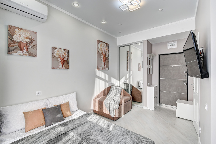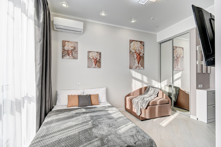 Номер уютно обставлен и оснащён необходимым, чтобы отдохнуть после долгого и насыщенного дня. Имеются телевизор. Оснащение зависит от выбранной категории номера.