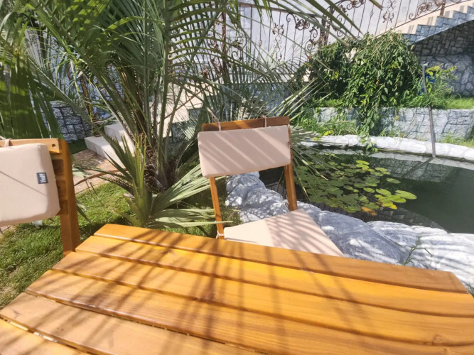 На территории есть пальмы, сад, искусственный водоём и беседка для барбекю. С территории открывается вид на Олимпийский парк, его объекты и море.
