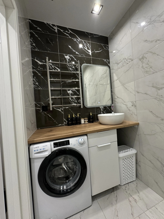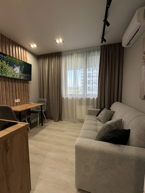 Квартира «Современная в ЖК Кислород» расположена в Сочи, в жилом комплексе «Кислород». До центра города, железнодорожного вокзала Сочи, Адлера и аэропорта можно добраться на транспорте. Рядом находятся пляжи Бытха, Цирк и Заря. Выезд на дублёр Курортного проспекта обеспечивает транспортную доступность до Адлера и Красной Поляны. Ближайшая остановка общественного транспорта — в пешей доступности. В шаговой доступности расположены магазины и точки каршеринга.