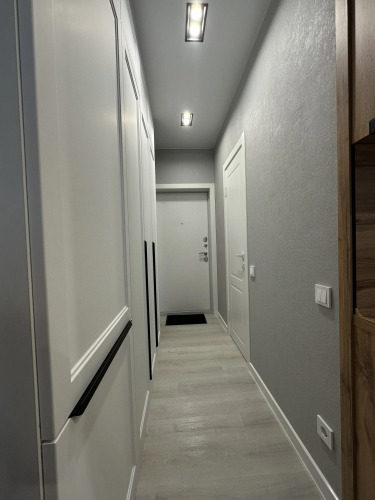Квартира рассчитана на проживание 2 человек. Есть диван-кровать, кухонная зона с холодильником, микроволновой печью, электроплитой и чайником, Wi‑Fi и телевизор с «Алисой», стиральная и посудомоечная машины, посуда и столовые приборы, бытовая химия, жидкое мыло, стиральный порошок, постельное бельё, полотенца, утюг, фен и гладильная доска.