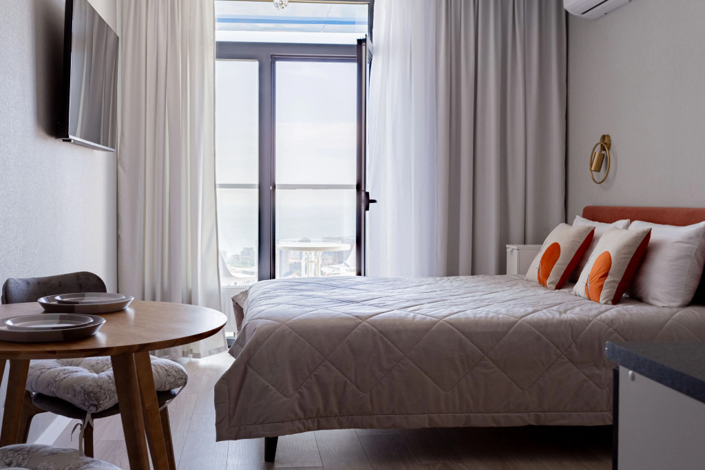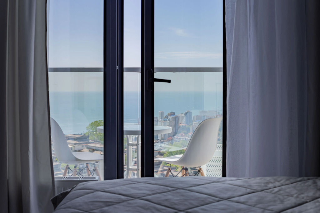 Гостиница Квартира Стильная с Видом на Море, адрес на карте Сочи, улица Ясногорская, д.16/2к7, с характеристиками номеров и правом онлайн бронирования на ресурсе vashotel.ru , стоимость проживания и удобства.