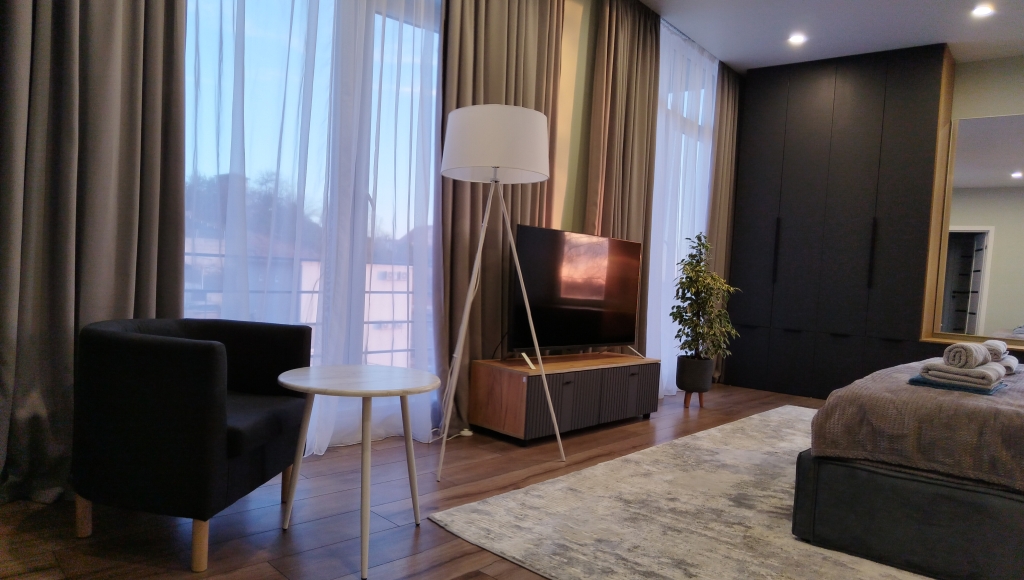 В номере гостей ждут телевизор и халат. Перечисленные услуги есть не во всех номерах.