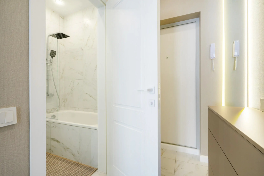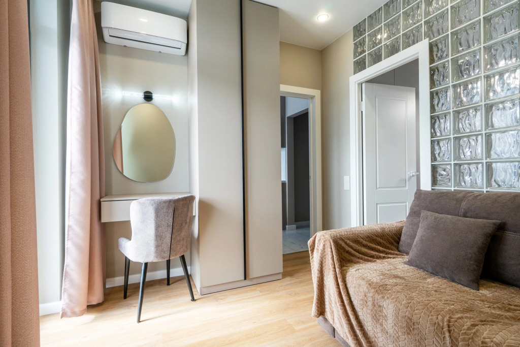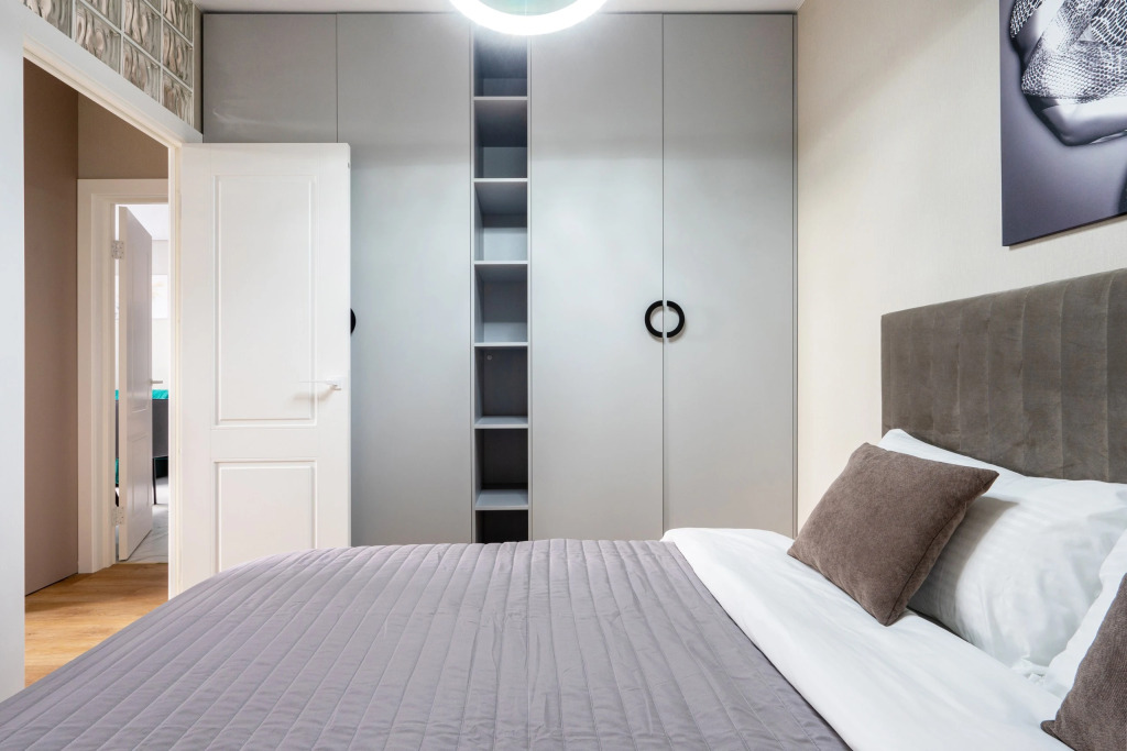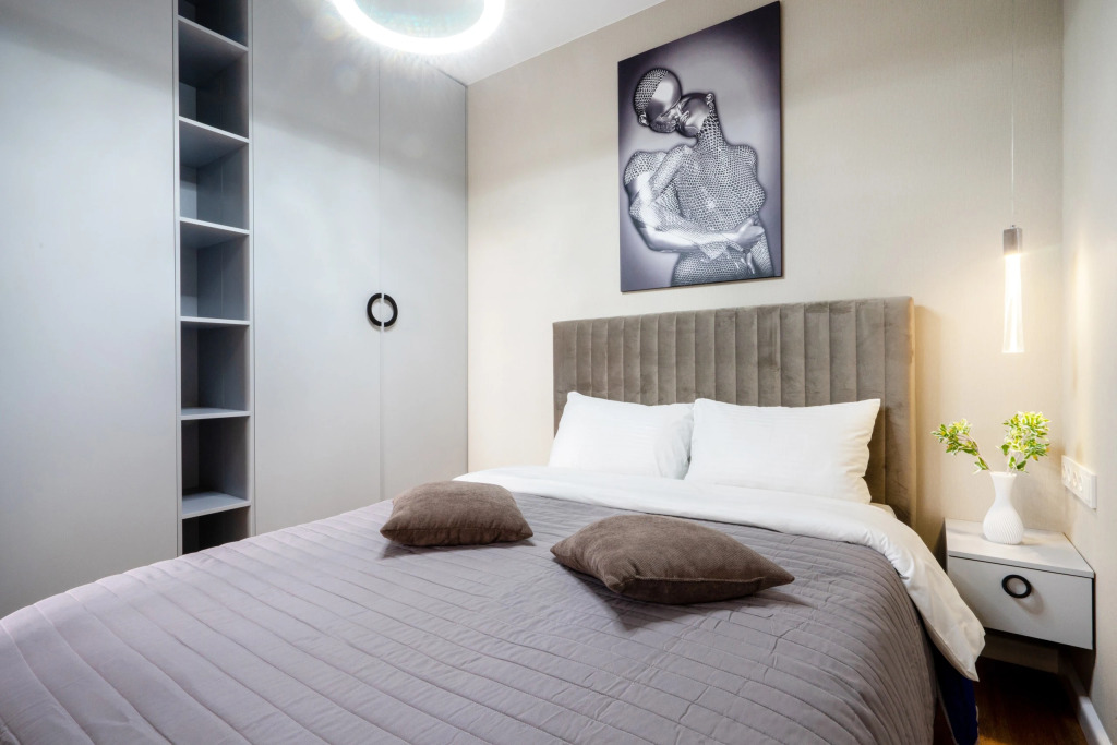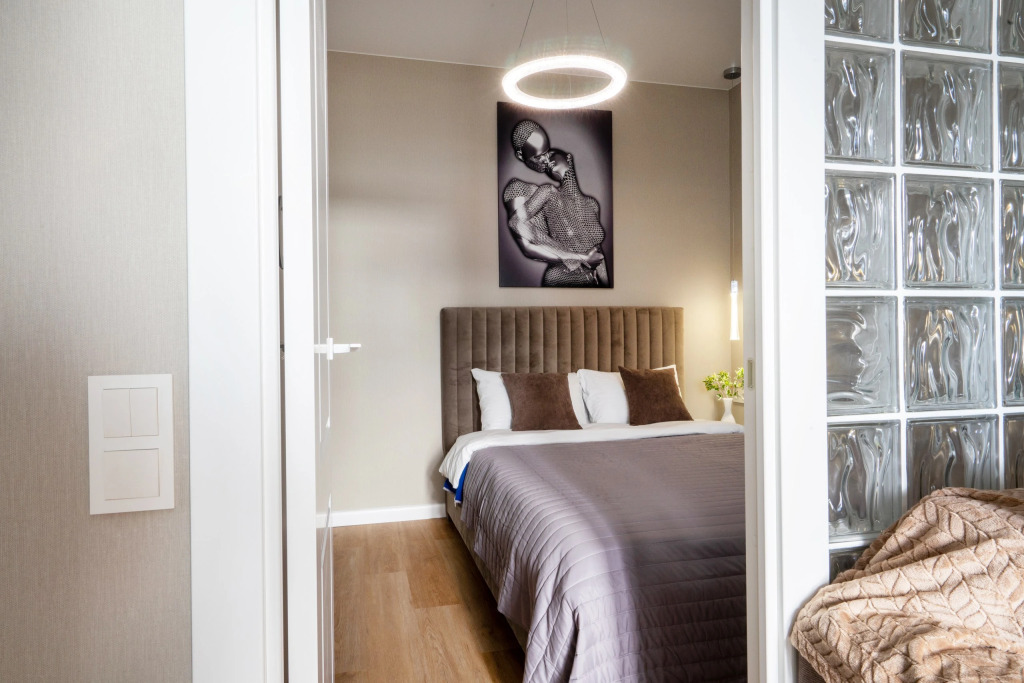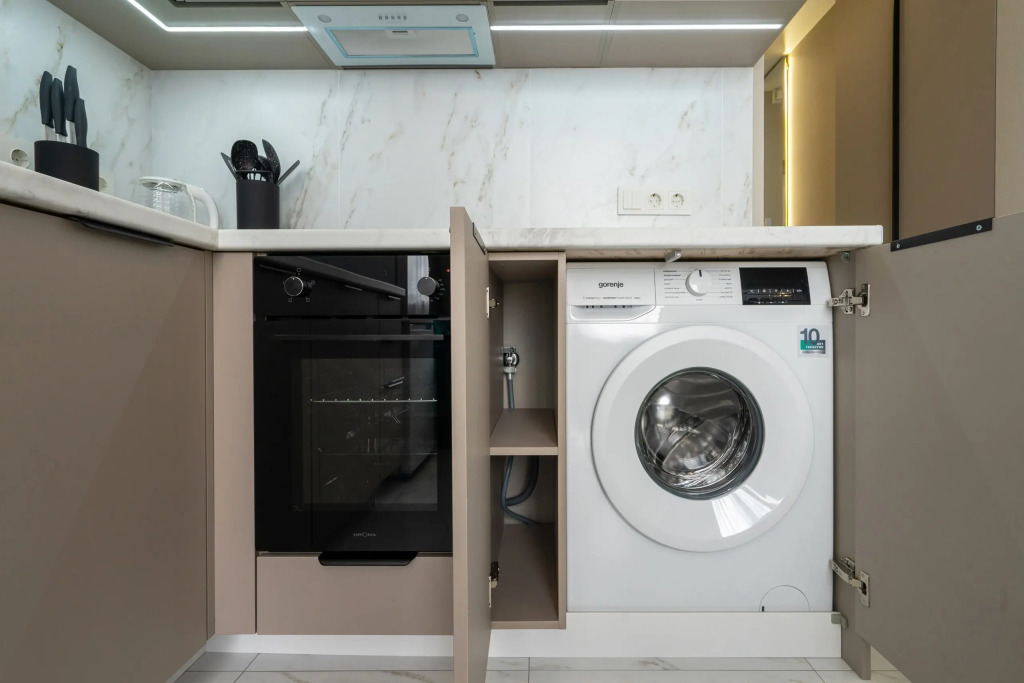 Апартаменты с индивидуальным балконом подходят для размещения 4 гостей. Организовано 2 спальных места: двуспальная кровать и раскладной диван. Установлены туалетный столик и вместительный шкаф. Предусмотрена обеденная зона и оборудованная кухня с холодильником, варочной панелью, вытяжным шкафом, микроволновой печью, чайником, посудой и столовыми приборами. В апартаментах есть сплит-система, смарт-телевизор, Wi-Fi, стиральная машина, фен, утюг, гладильная доска и сушилка для белья. Санузел совмещённый, с душем. Подготовлены постельные принадлежности, полотенца, мыло, гель для душа, шампунь и средство для мытья посуды.