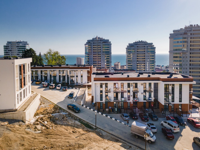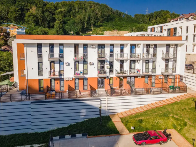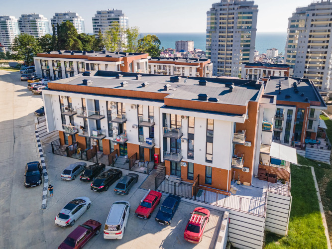 Апартаменты расположены в корпусе №6 жилого комплекса «Касабланка». Жилой комплекс состоит из трёхэтажных домов с озеленённой территорией, зонами отдыха, смотровой площадкой, спортивными площадками, парковкой на территории, детскими площадками и мангальной зоной. Подогреваемый бассейн площадью 18/7 метров и глубиной 1.5 метра с зоной для детей, душем, раздевалкой, баром и лежаками находится в пешей доступности от корпуса, в котором располагаются апартаменты.